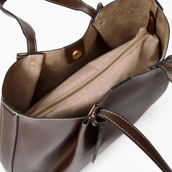The City Tote features a removable interior section that adds flexibility to your day. It secures neatly inside the bag with subtle fastenings and unzips for easy access, keeping your essentials organised and protected.