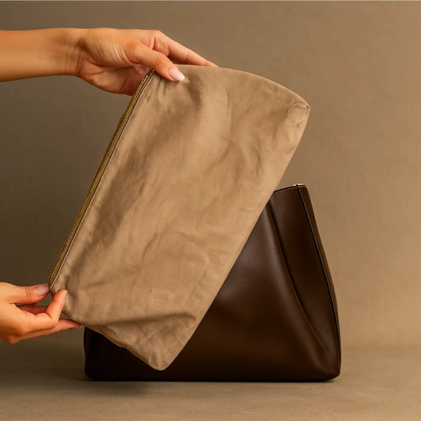 Premium vegan leather with a refined matte finish for structure and durability. Smooth to the touch yet resistant to scratches and daily wear.