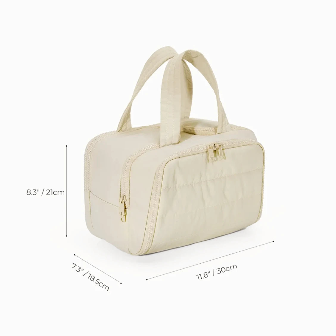 With a space-smart 11.8" width, the Cubi Case is perfectly sized to hold your skincare, toiletries, tech cords, or daily must-haves — all without weighing you down. Its structured silhouette (8.3" x 7.3") makes it ideal for travel, gym lockers, or handbag organisation, keeping your essentials in check without the clutter.